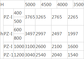 1、水泵房底板標高和水倉(或配水巷)入口標高之高差H與連接桿長度h值,本設(shè)計考慮四種情況,如下表所示:(單位:毫米)